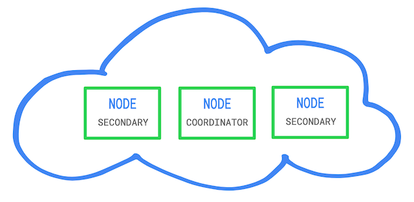 Primary node can help with coordination of multiple node deployed in a cloud. One of the projects I've worked on had a NodeJS worker that ran multiple types of tasks. I wanted to upgrade this setup in order to be easily scalable, have a primary node (or coordinator) that triggers the tasks and continue processing even when some of the nodes fail.